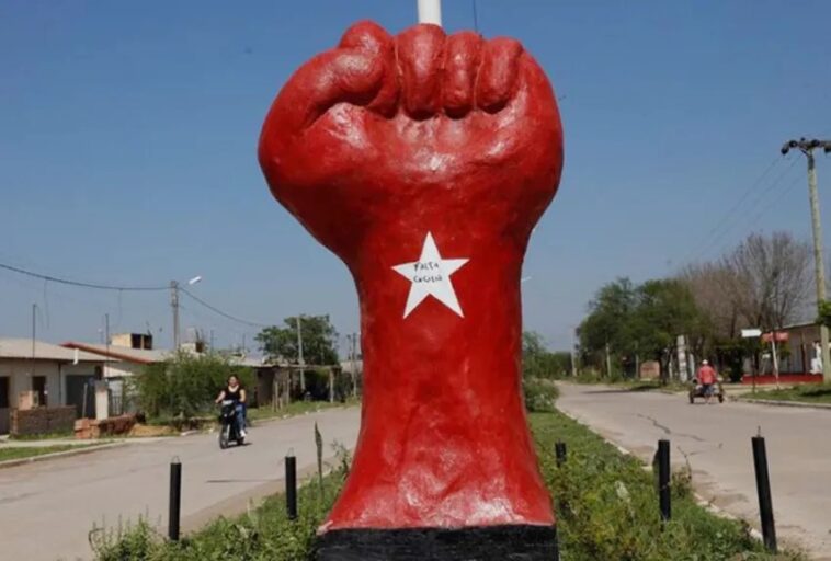 La escultura del puño cerrado pintado de rojo con una estrella blanca en el centro que identificaba el ingreso al barrio Emerenciano Sena fue retirada mediante el uso de una grúa. La remoción se concretó días atrás, luego de que el Concejo Municipal de Resistencia aprobara una ordenanza que cambia el nombre de la barriada por el de «Papa Francisco».